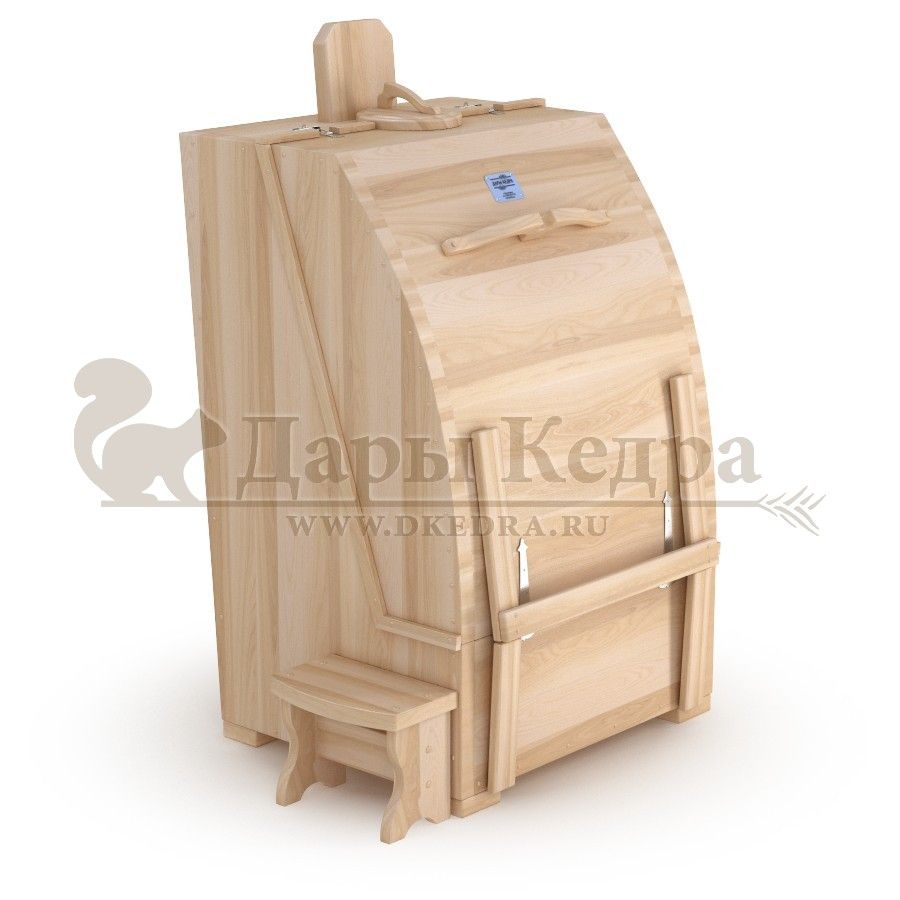 Кедровая бочка (фитобочка) квадратная «Профессиональная» Квадратная фитобочка из кедра - это мини парная, которую можно использовать не только в спа-салонах, но и дома. Толщина стенок составляет 40-45 мм, что позволяет увеличить срок службы изделия. Откидная дверь бочки во время открывания фиксируется внешней подставкой - опорой, которая в закрытом состоянии складывается и не занимает лишнее пространство. Во время парения человек сидит внутри кедровой бочки, а голова находится снаружи. Благодаря этому исключается возможность перегрева. Встроенная ручка из кедра на двери делает эксплуатацию фитобочки более удобной. Парение в фитобочке благотворно влияет на организм в целом: повышается иммунитет, выводятся шлаки и токсины, улучшается работа органов тела и состояние кожи.
